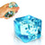 Cool transparent cube with floating snow pieces for a fun visual effect.